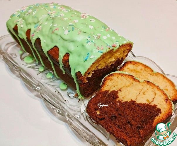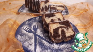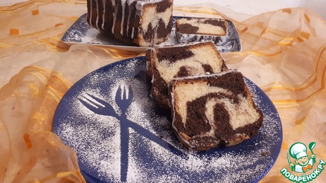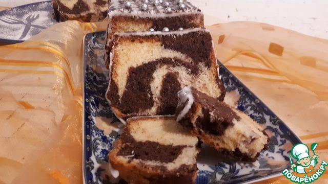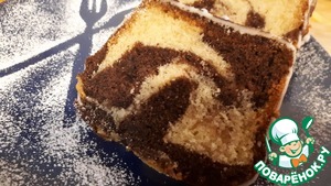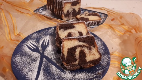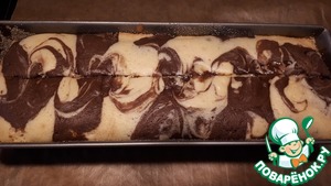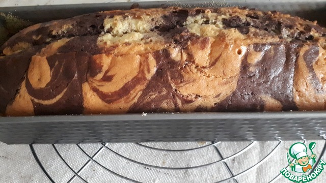 При нарезании кекса, получался у каждого кусочка свой рисунок. Я сама была в удивлении, как так могло получится!? Даже были кусочки полностью белого или шоколадного цвета. Внук сидел, смотрел и говорит:"Давай еще отрежем и посмотрим какой рисунок!" Видит и слышит, как я удивляюсь рисункам. Ему скоро пять лет, но сладкоежка!
