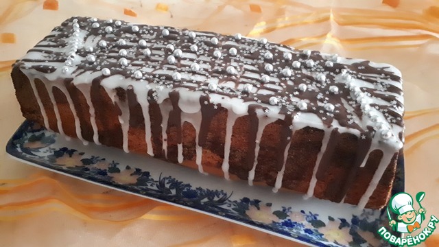 Я развела сахарную пудру (130 г) горячей водой до консистенции насыщенного молочного цвета и чтобы была тягучая масса, и нанесла на кекс.