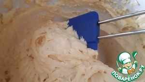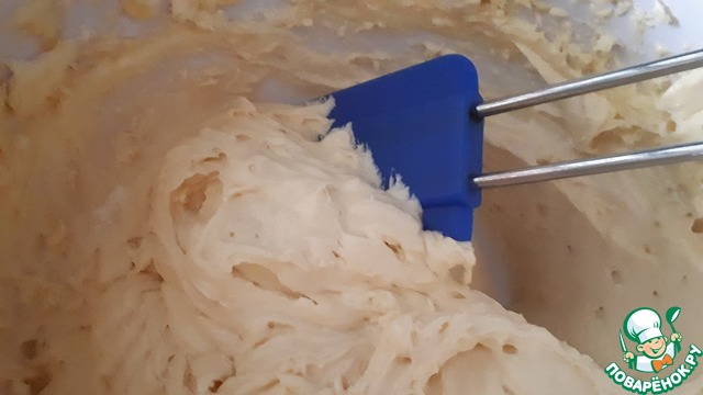 Ввести муку с разрыхлителем в маслянную смесь, чередуя с молоком. Быстро взбить на средних оборотах миксера.