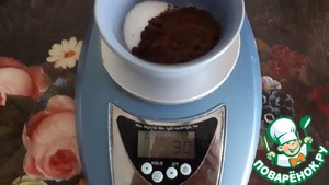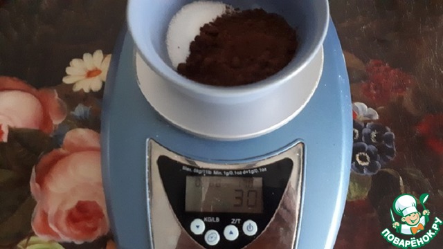 Взвешиваем 15 г какао-порошка и 15 г сахара.