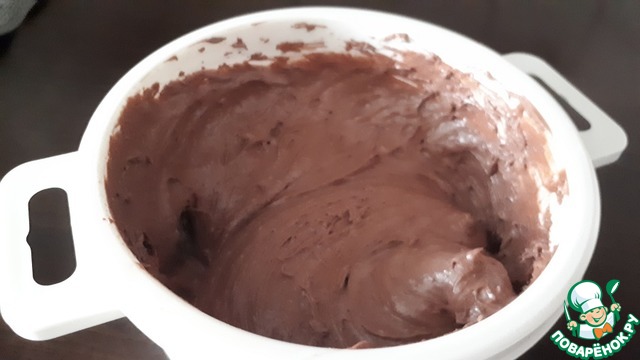 От основной массы теста отделяем 1/3. В эту часть добавляем просеянное какао с сахаром и 2 ст. л. молока. Быстро перемешать или быстро взбить на средних оборотах миксера.