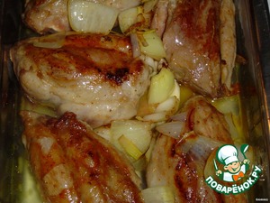 Противень накрываем фольгой и отправляем в разогретую духовку. Оставляем его там до готовности мяса.