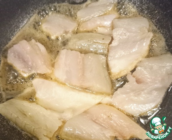жареные кусочки рыбы. Сверху полить соусом. Можно подавать. Приятного аппетита.