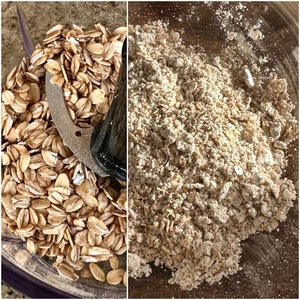 Засыпал я рекомендуемое количество хлопьев в блендер и хорошо, но не «в труху», их проблендерил.