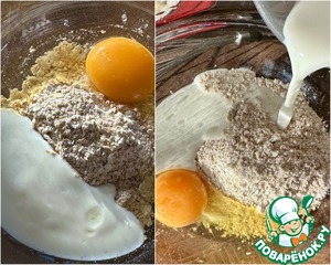 Первая. Продукты: геркулес - 3 ст. л., греческий (я взял козий натуральный без добавок) йогурт – 2 ст. л., молоко 60 гр., яйцо - 1 шт.. соль – щепотка.