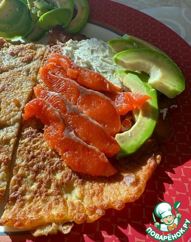 Сыр творожный, авокадо и слабосоленая нерка. Очень интересное сочетание получилось.