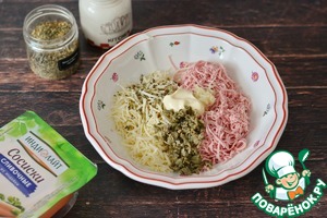 С майонезом не переборщите, чтобы масса не вышла жидкой. Вместо майонеза можно использовать творожный сыр. -