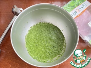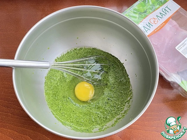 Шпинат, растительное масло, соль и сахар пробейте погружным блендером, в кашицу.