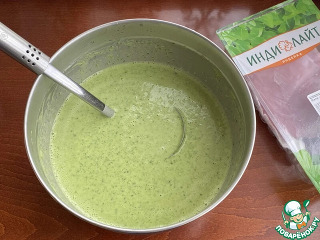 Мясной паштет из индейки хорошо сочетается с нежным, сливочно-чесночным кремом... И этот дуэт хорошо дополняют шпинатные блины.