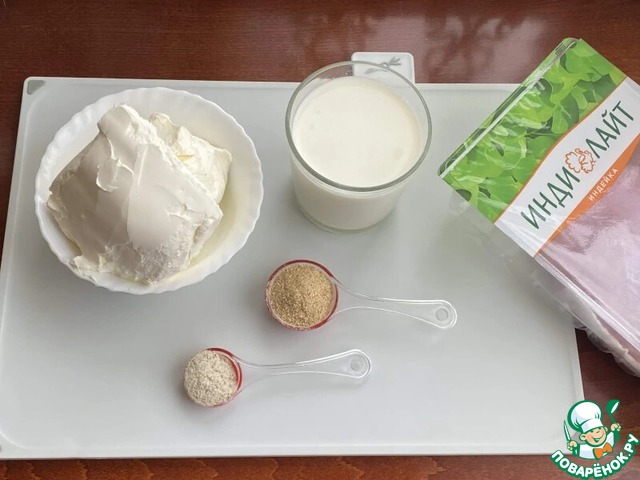 В первую очередь необходимо приготовить начинку №1 из филе индейки ТМ Индилайт. Для этого подготовьте все необходимые ингредиенты.