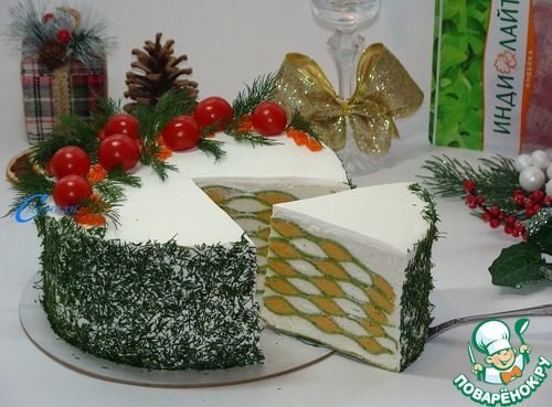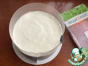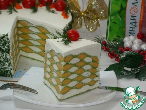 Таким образом, соберите торт. Сверху так же можно нанести любую из начинок ( у меня это сливочно- чесночная).