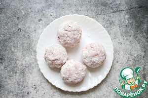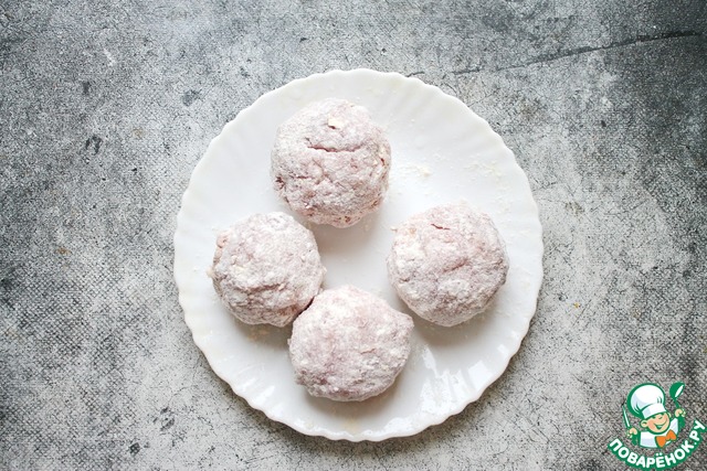 Каждый шарик запанируйте в муке. Муки может понадобиться больше или меньше, все зависит от размера.