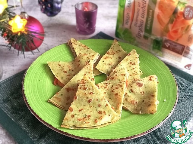 Рецепт «Шпинатные блинные треугольники с ветчиной»: