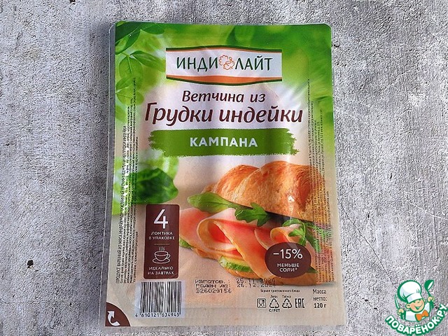 В рецепте я буду использовать ветчину из грудки индейки "Кампана".