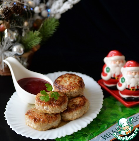 Подаём котлеты горячими с брусничным соусом. Всего доброго Вам в Новом году!