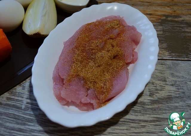 Замариновать на 30-60 минут. P.S.: Специи можно использовать по своему вкусу.
