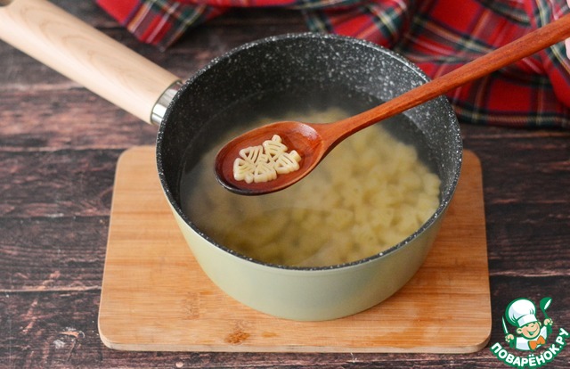 Что касается макаронных изделий, то выбирайте те, которые вам нравятся. Они могут быть короткими, длинными, абсолютно любой формы. В данном блюде форма макаронных изделий не принципиальна. У меня макароны в новогодней стилистике, в форме очаровательных ёлочек.