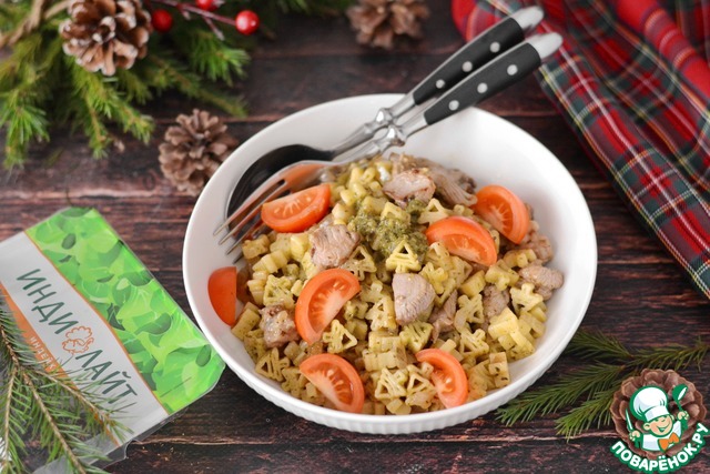 Рецепт «Новогодние макароны с индейкой и песто»: