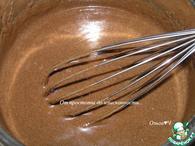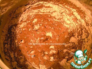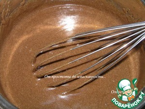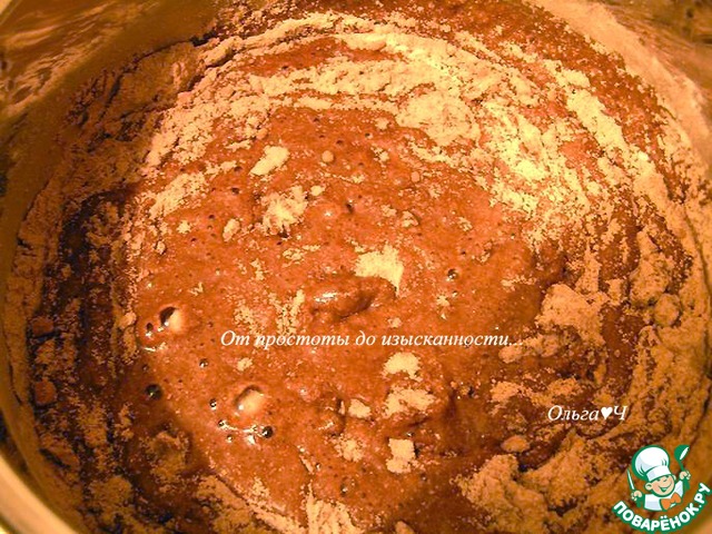 Отдельно смешайте воду (275 мл) с сахаром (190 г) до растворения, добавьте растительное масло, смешайте с сухой смесью...