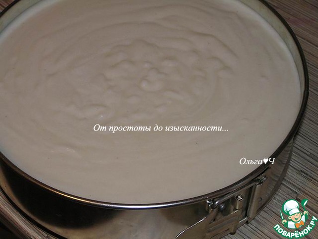 Тесто перелейте в разъемную форму для выпечки, диаметром 24 см, смазанную маслом (я еще застелила дня пекарской бумагой).