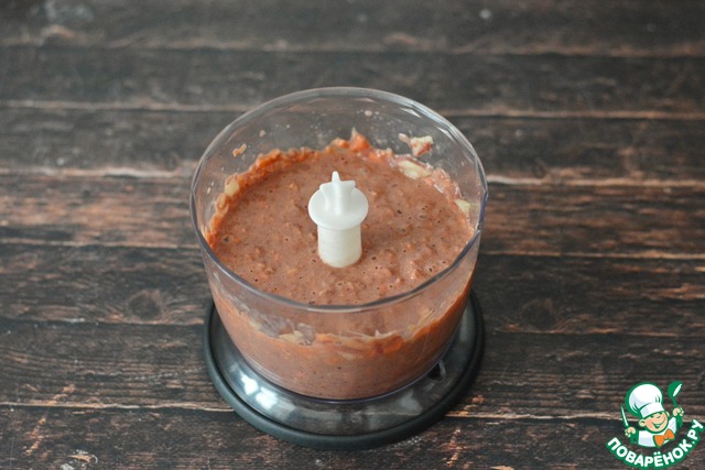 В блендере измельчите печень индейки, лук и морковь в единую массу.