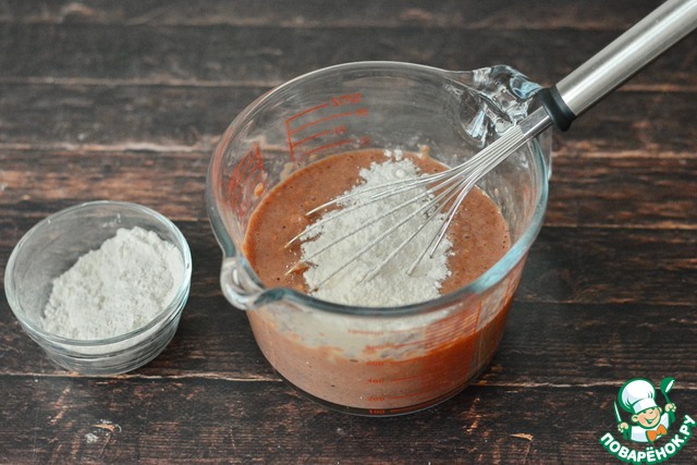 Постепенно введите муку, размешивая венчиком, чтобы не было комочков.