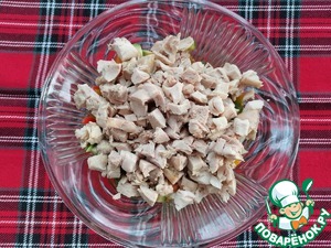Аккуратно перемешать. Дать ингредиентам подружиться в течение ~15 минут. Подать к столу.
