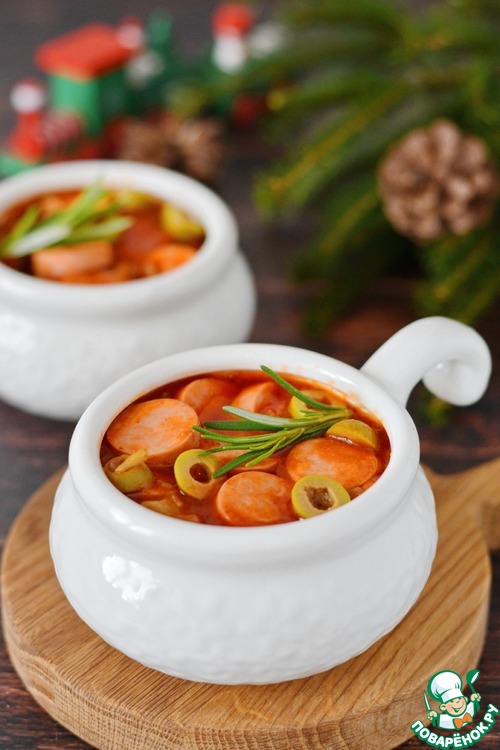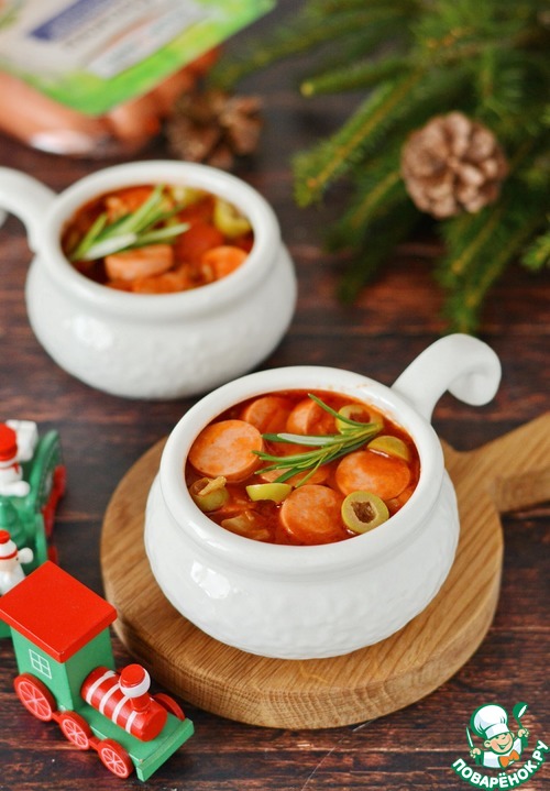 Рецепт «Горячая закуска из сосисок "Солянка"»: