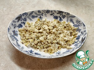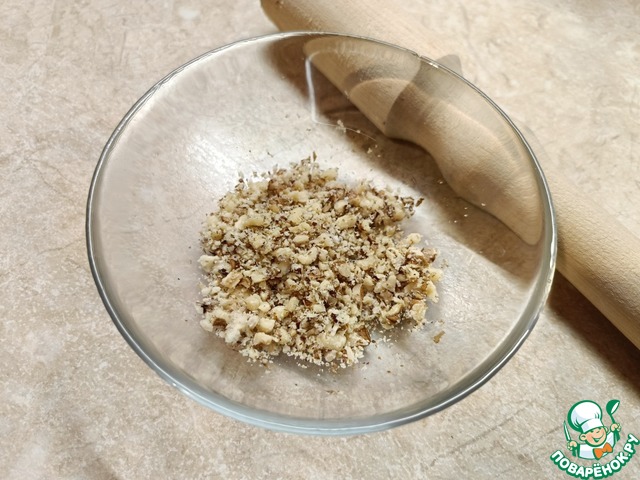 Грецкие орехи подсушить на сухой сковороде и измельчить.