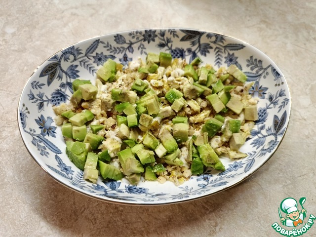 2 слой - авокадо. Его заправкой смазывать не надо.
