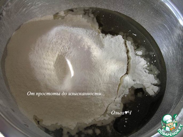 Вскипятите воду, добавьте соду (она должна зашипеть) и введите в тесто.