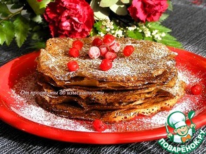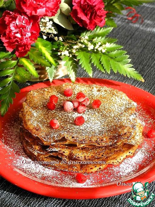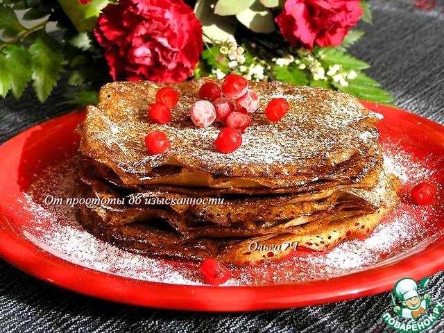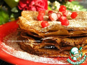Блинчики с дырочками, поэтому хорошо пропитываются. При подаче посыпьте сахарной пудрой.