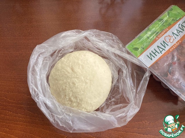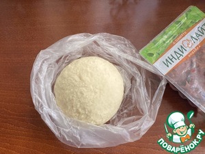 Готовое тесто заверните в пакет и оставьте на столе. Тесто получается мягким, не липнущим к рукам и очень комфортным в работе.
