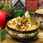 Как то раз, в новогодние каникулы, я побывала в Ростове на Дону и там узнала давнюю традицию у донских казаков: на Святки лепить вареники. Да не простые, а с сюрпризами- загадками. И, согласно традиции, люди "предсказывали" себе удачу на новый год. Варианты "начинок -сюрпризов" самые разнообразные: - это могут быть и кольца, пуговицы, орехи, перец, фасоль. На Дону, вареники пользуются огромной популярностью: даже рестораны включают блюдо в новогоднее меню. Предлагаю и вам последовать такой интересной традиции... В качестве основной начинки, я решила сделать дуэт- картофель и индюшиную печень от ТМ "Индилайт".