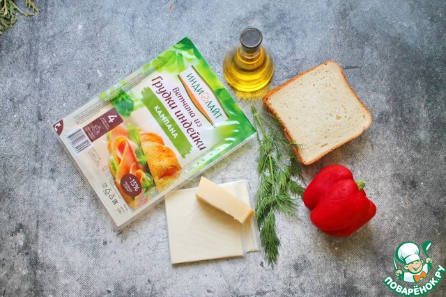 Подготовьте все необходимые ингредиенты для приготовления горячих бутербродов Ёлочки.