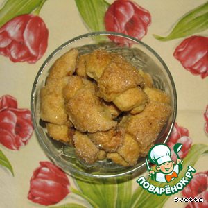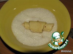 Каждый треугольник скатать к центру. Обмакнуть в сахар.
