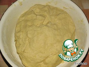 Добавить муку, соль, соду, гашенную уксусом, и половину сахара. Вымесить крутое тесто.