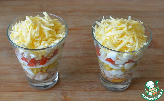 Завершающим слоем натираем твёрдый сыр.