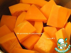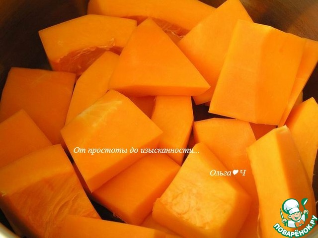 Тыкву крупно нарежьте, выложите в кастрюльку, залейте водой, чтобы едва покрывала тыкву.
