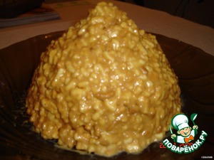 На блюдо выложить содержимое торта и сформировать "муравейник" в виде конуса