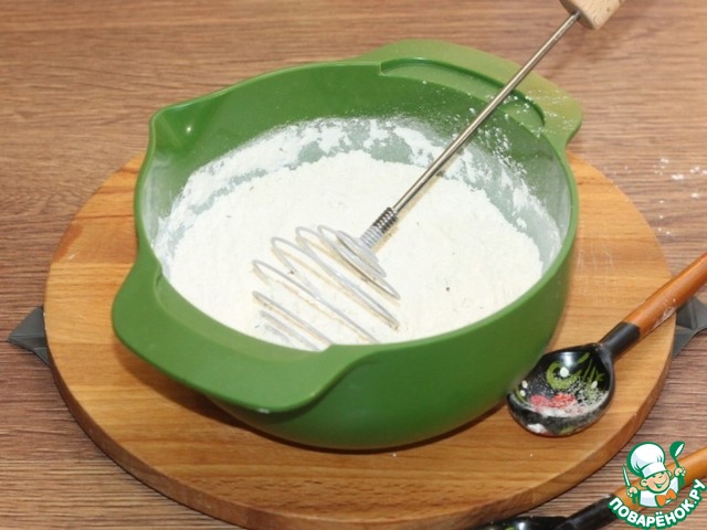 • 4. В другой миске соедините муку с 0,5 ч. л. соли, сушеными травами и перемешайте.