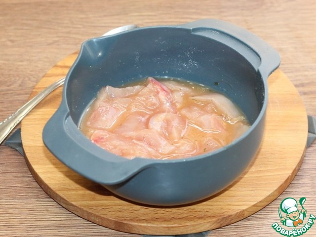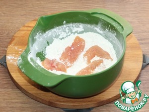 • 9. Обмакните кусочки индейки уже в молочную смесь.