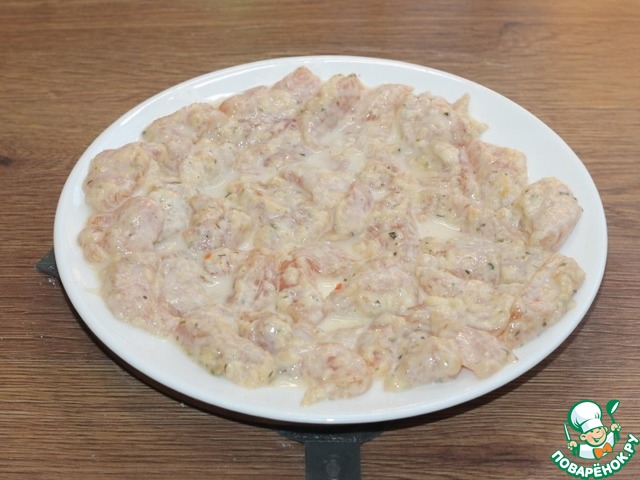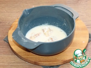 9. Обмакните кусочки индейки уже в молочную смесь.