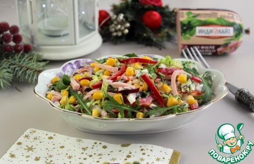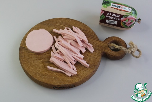 Для салата я выбрала колбасу из филе индейки ТМ Индилайт, которой я доверяю.