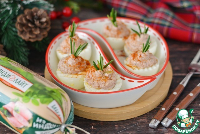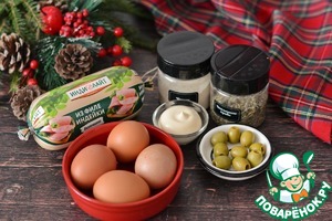 Ингредиенты для «Яйца, фаршированные ветчиной»: