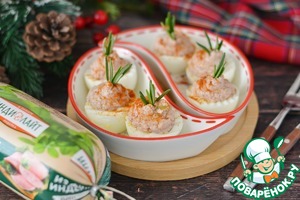 Для декора я присыпала фаршированные яйца паприкой и украсила розмарином.