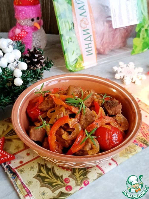 Мясо с болгарским перцем, восхитительное сочетание Кстати, мне кажется, что мясо с голени в индейке самое вкусное! Наденька, спасибо за рецепт