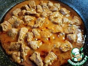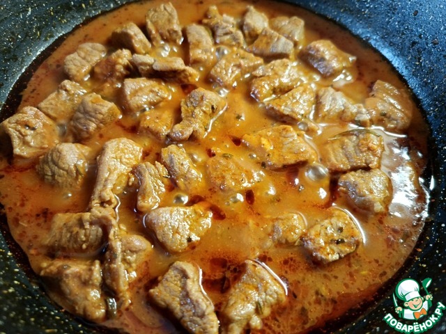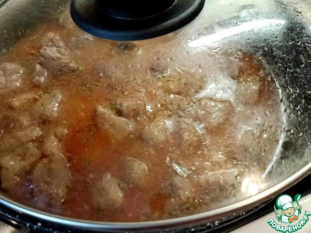 Тушить индейку в томатном соусе 30-35 минут. Соус слегка загустеет.