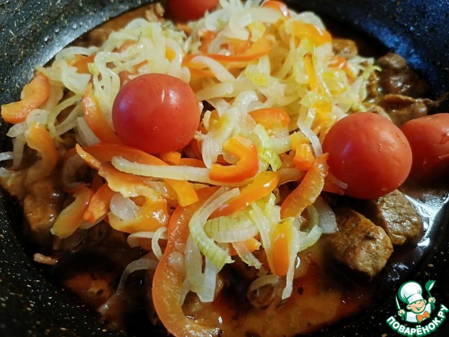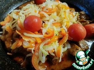 У меня в холодильнике заскучали четыре черри, их я тоже отправила в сковороду.