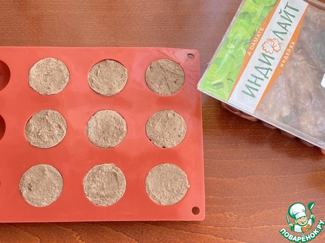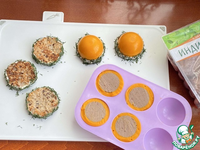 Готовым паштетом заполните небольшие полусферы и поставьте в холодильник для застывания.